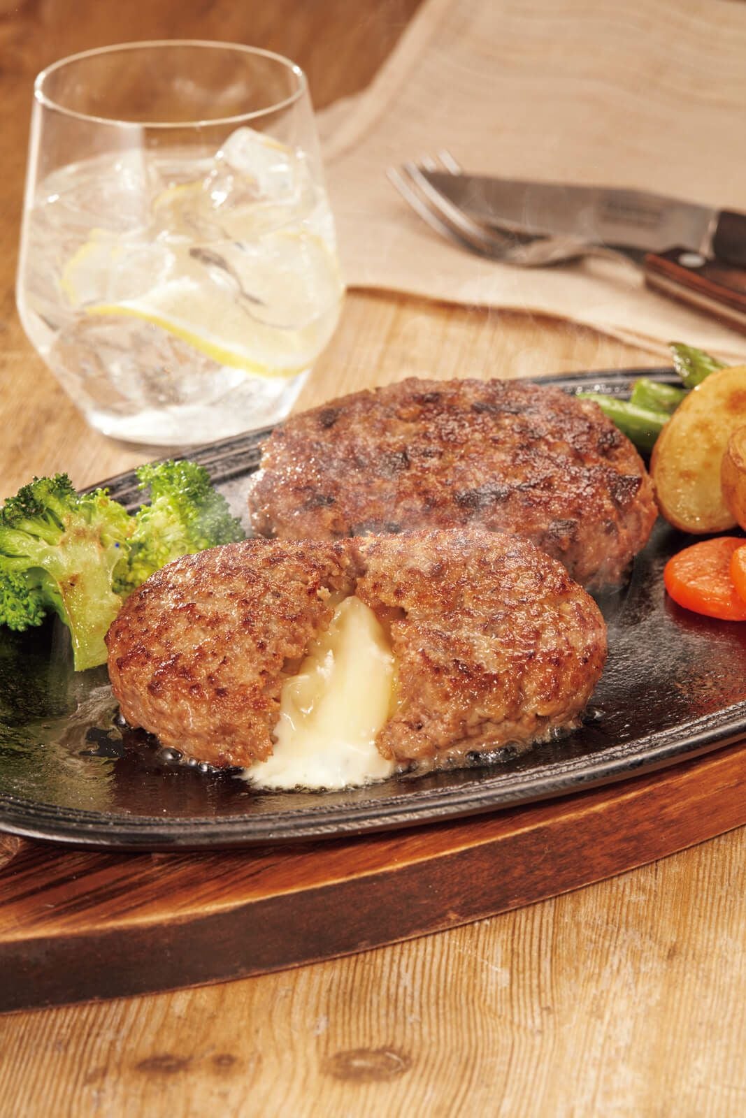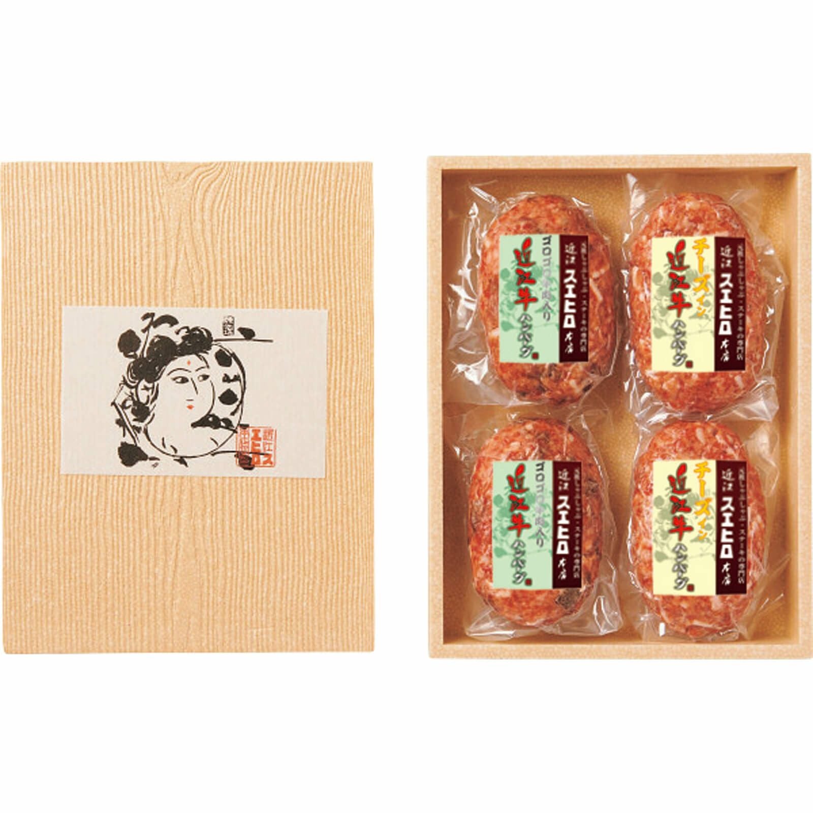 チーズイン近江牛合挽ハンバーグ(近江牛70%:国産豚30%)×2、ゴロゴロ牛肉入り近江牛合挽ハンバーグ(近江牛50%:国産牛33%:豚17%)×2
