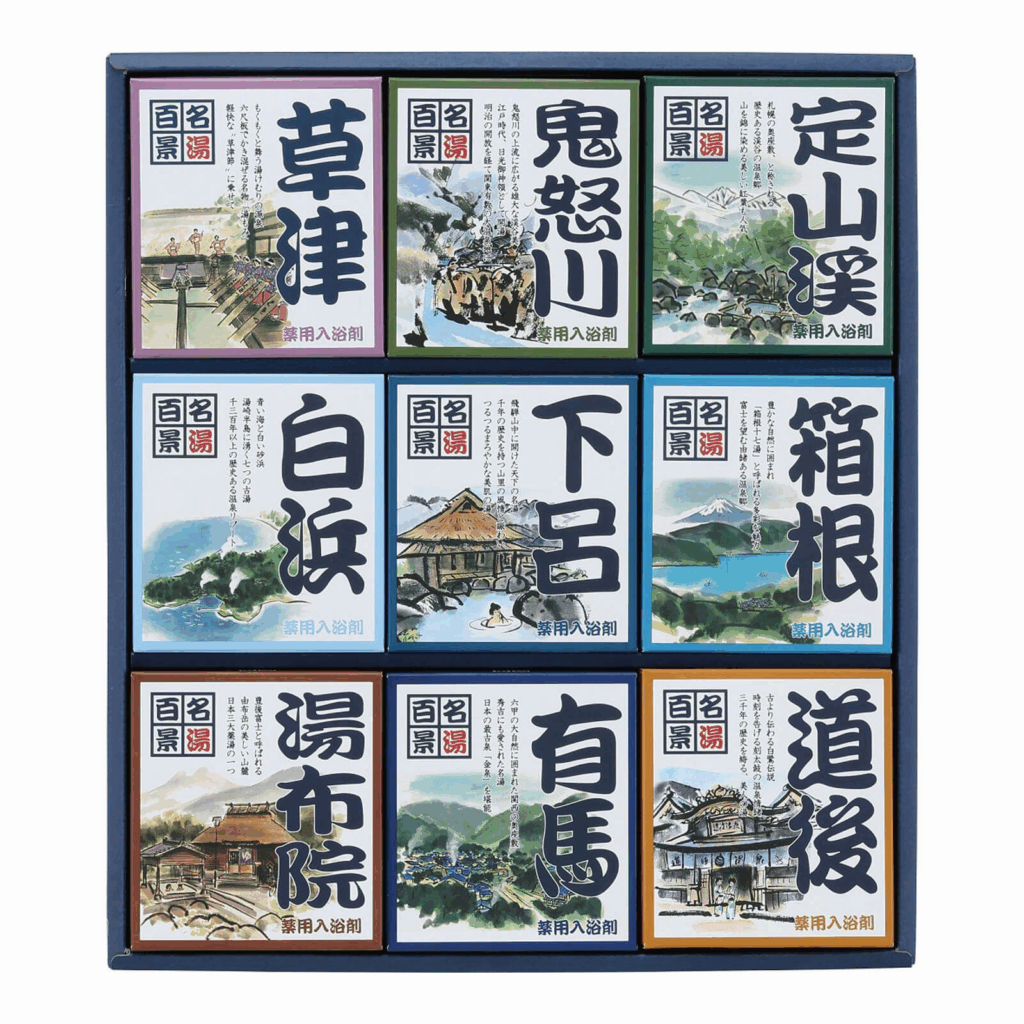 9種(鬼怒川・下呂・有馬・草津・白浜・湯布院・定山渓・箱根・道後)の各地の名湯気分をご自宅でお楽しみいただけます。