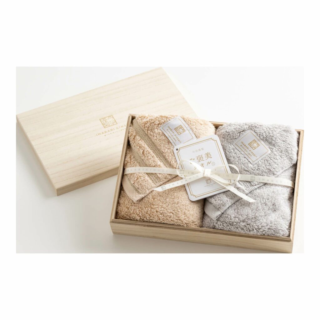 ④今治謹製 ご褒美タオル フェイスタオル2枚セット(木箱入)