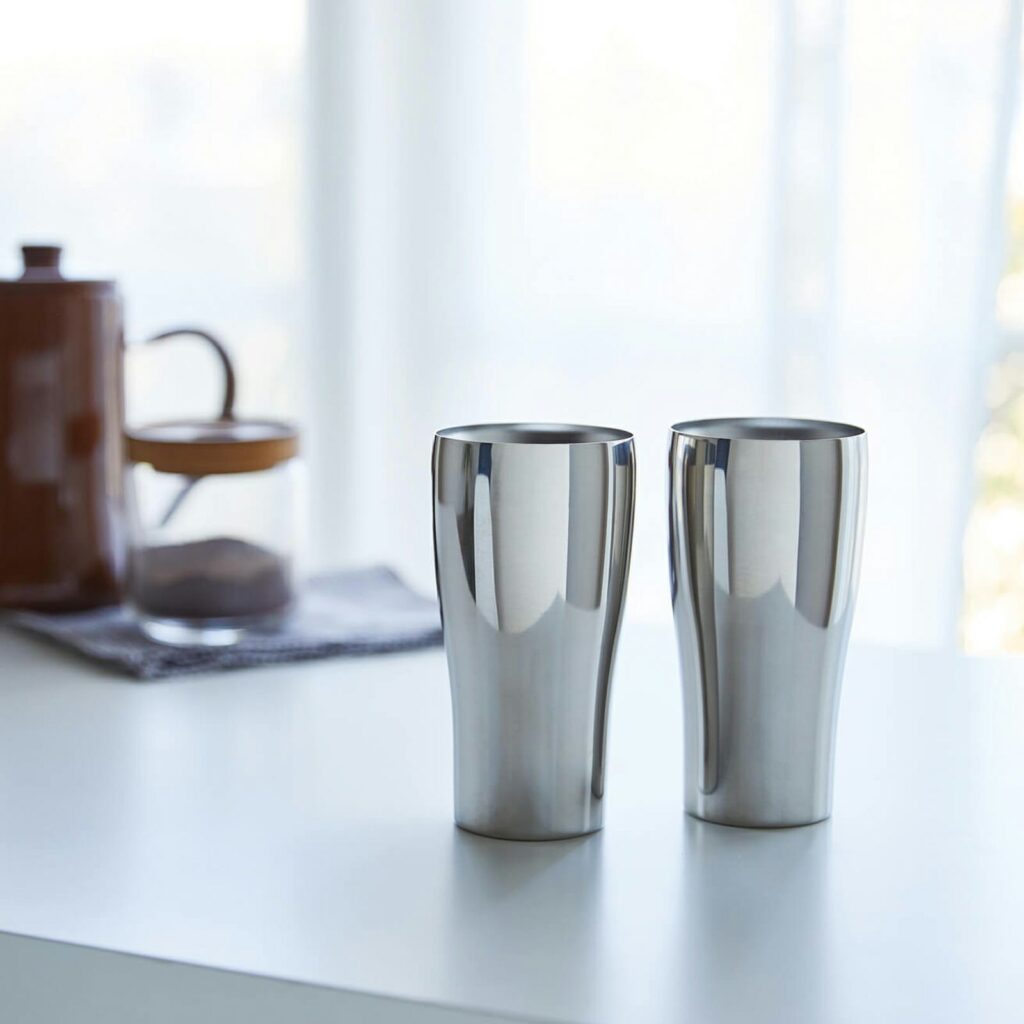 断熱技術に優れる”魔法びんのパイオニア” サーモスのペアタンブラーです。魔法びんと同じく真空二重構造のため、高い保温・保冷力で長時間飲み頃温度をキープします。氷を入れても結露しない・熱々の飲み物を入れても外側が熱くならない優れもの!320mlの容量は使いやすく、見た目もシンプル&スマートでおしゃれなデザインです。晩酌でも普段使いにでも一年中使えて喜ばれます。