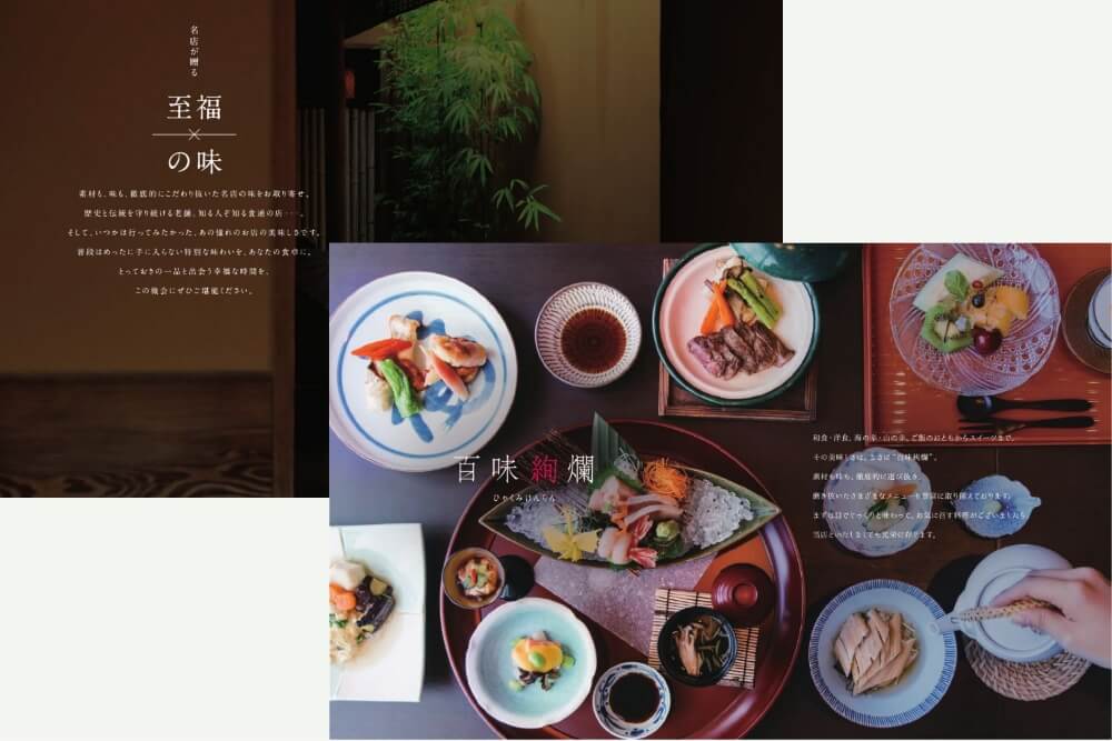 人気有名店から産地直送品まで、日本全国から選び抜いた極上の美味しさをお届けするカタログギフトです。各地の名物料理・海の幸・山の幸・憧れの名店老舗の味など、彩り豊かな味わいで贅沢なおもてなしをいたします。ブランドの食への真摯な想いが詰まった「ブランド特集」、素材や味を徹底的に磨き抜いたメニューを紹介する「百味絢爛」、伝統を守り続ける憧れの味「名店特集」など、お品書きを見るように選べる、”選ぶ楽しさ”が詰まったカタログギフトです。