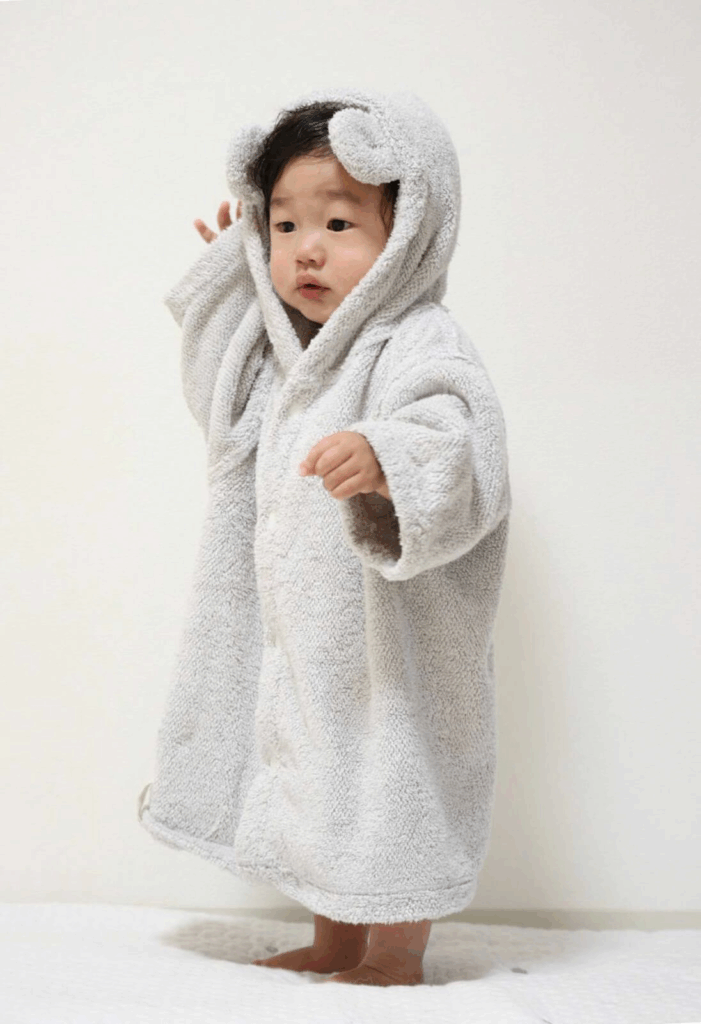 特許技術「スイッチパイル」で洗う度にふっくらとした弾力が増し、しっかり吸水してくれる驚きのあるタオル素材で作られたベビーバスローブです。