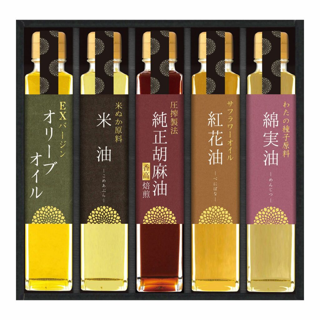 調味油などのセットもおすすめです。日持ちもするものは、後々使えるので好みがはっきりしない場合の消耗品ギフトとして喜ばれます。