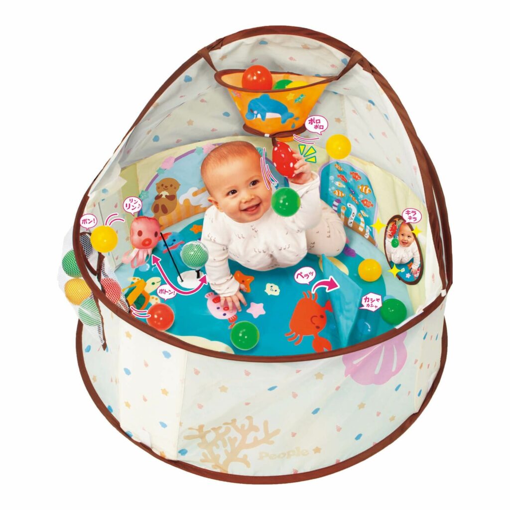 360°に散りばめられた仕掛けを使った20種類以上の知育遊びができるベビードーム。頭や体を使っていろんな遊びができるので、寝返りを始めた赤ちゃんも飽きることなく遊んでくれるでしょう。