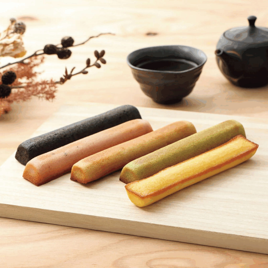 和の素材を愉しむスティック型に焼き上げたおしゃれなスティックタイプ和フィナンシェです。黒糖やごまなどの和の味わいから、柚子やきなこなどの珍しい味わいまで、和の素材を使ったこだわりのフレーバーたちをお楽しみいただけます。苦味のあるお茶などと相性抜群なので、ティータイムのお供に最適です。