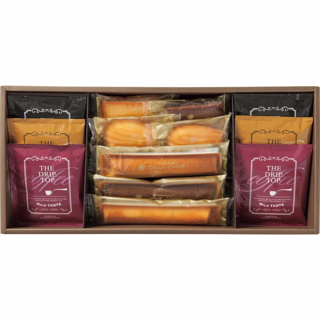 ドリップ珈琲もセットになっており、「優雅なひとときをどうぞ」というメッセージも一緒に贈ることができます。失敗しない定番でありながら、上質さも伝わる鉄板のギフトです。