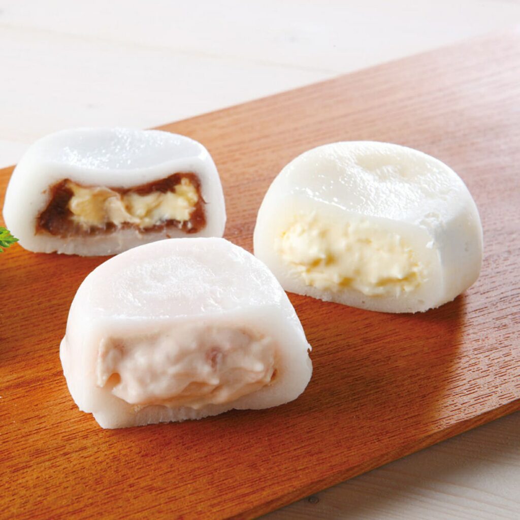 お正月の家族団欒に、驚きと笑顔を届ける「スプーンで食べる」新感覚の大福です。手で持てないほど柔らかい極上の求肥と、八天堂自慢の優しいクリームが口の中でとろけ合う瞬間は、まさに至福のひととき。